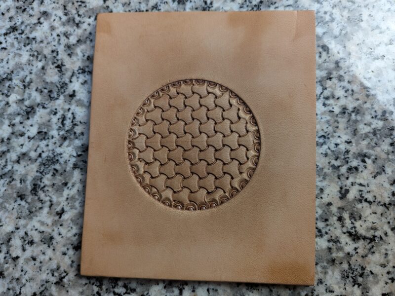 これまでは、唐草模様の空いたスペースにはバスケット刻印やアジロ編み風の刻印を打つことが多かったんですが、次回からは新たにこの 「トライウィーブ刻印」 も加えていこうと思います!
